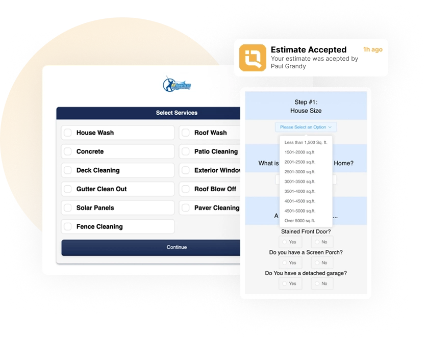 Instaquote automates your quoting process, allowing customers to self-quote on all of your services. This not only saves you time and money, but also increases your average ticket price and helps to close more jobs.