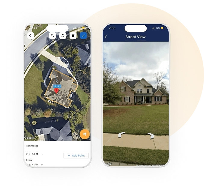 The integrated map measuring tool gives you the ability to quote jobs from wherever you are by measuring the square footage of the property. You can also use the “Street View” feature within the map to lay eyes on the property from anywhere.